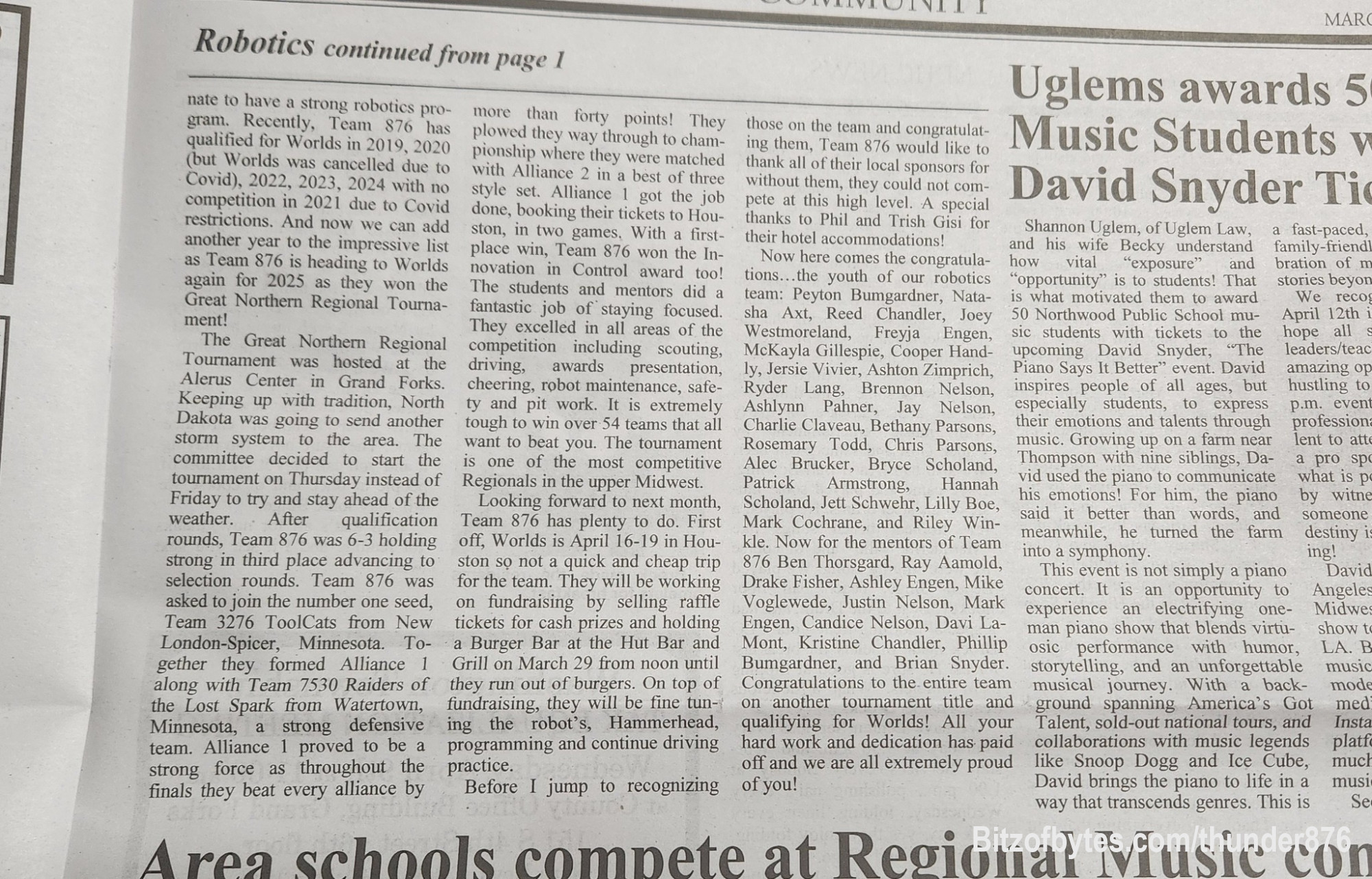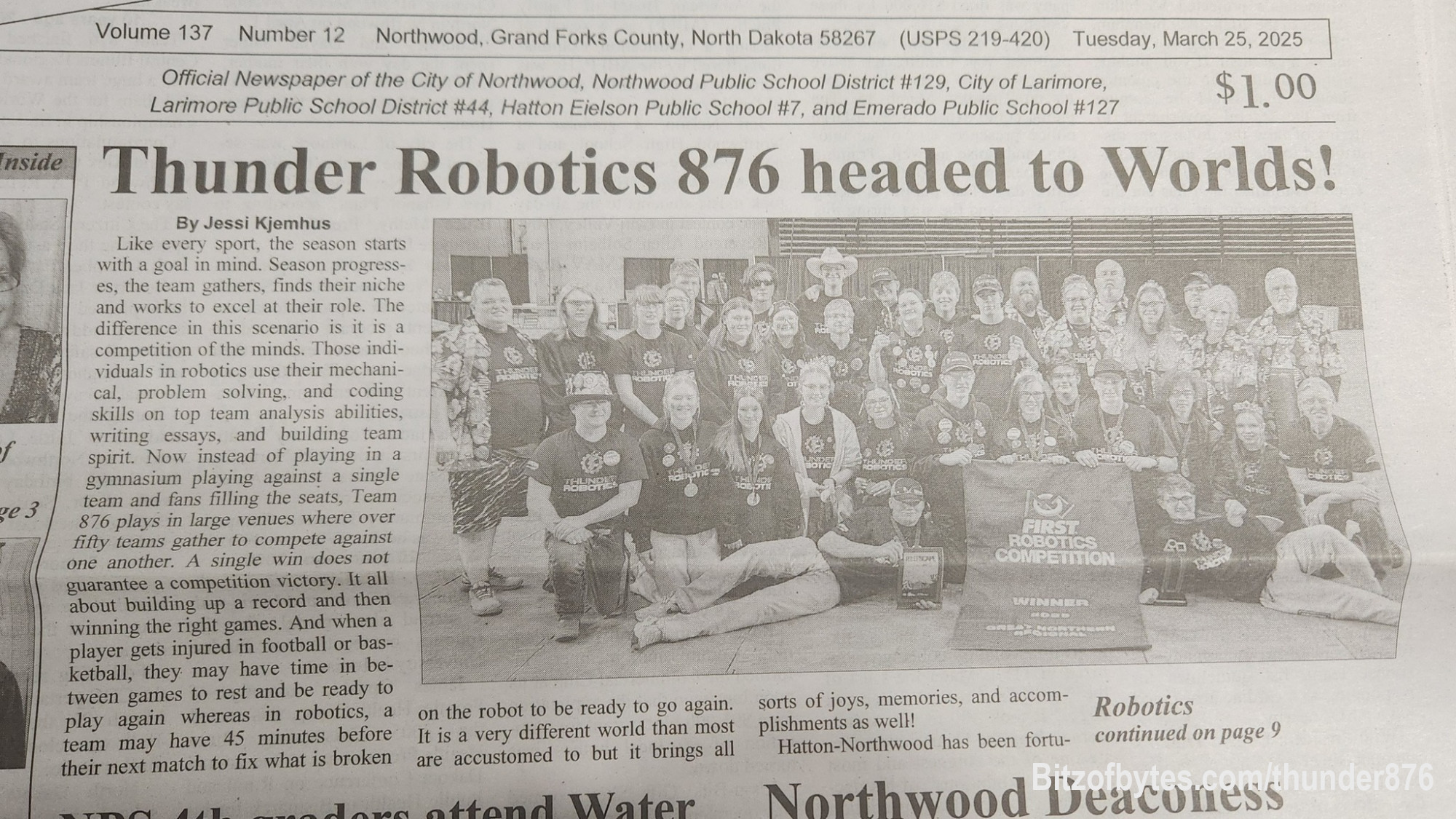 Saturday May 18th there is a Thunder Robotics fundraiser at the Hatton Community Center from 5-7 pm. See this years successful robot demonstrated by the students that design and drove it.